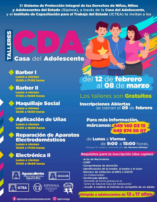 GOBIERNO DE AGS - ABIERTAS LAS INSCRIPCIONES PARA LOS TALLERES GRATUITOS DE LA CASA DEL ADOLESCENTE